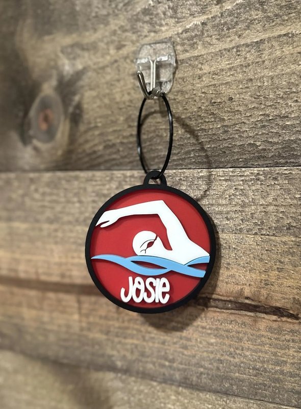 Celebrate your favorite swimmer with this custom swimming-themed accessory, perfect as an ornament, keychain, or bag tag! Featuring a bold background, sleek swimmer silhouette, and your personalized name, this design makes a thoughtful gift for athletes, swim teams, and water lovers. Perfect For: Swim team gifts & end-of-season awards Stocking stuffers or holiday ornaments Personalized bag tags for swimmers on-the-go Everyday use to show off your passion for swimming Each piece is made to order with care. Whether it’s hanging on a tree, clipped to keys, or traveling on a swim bag, this design makes a unique and practical keepsake!