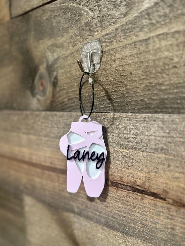Add a touch of elegance to your dance gear with this custom ballet bag tag! Featuring delicate pink ballet slippers with your personalized name across the front, this durable acrylic tag is both stylish and practical — the perfect accessory for dancers of all ages.