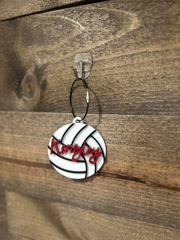 Make your gear stand out on and off the court with this custom volleyball bag tag! Featuring a bold black-and-white volleyball design with your name in vibrant lettering, this tag is perfect for players, coaches, and fans.