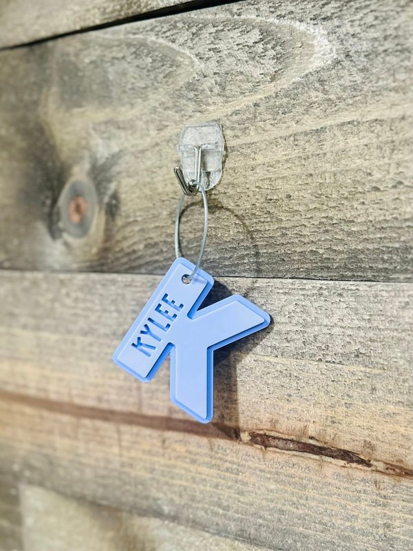 Carry your name in style with this bold personalized initial keychain! Designed with a large letter and custom name cutout, this durable acrylic keychain is the perfect way to personalize backpacks, sports bags, purses, and keys.
