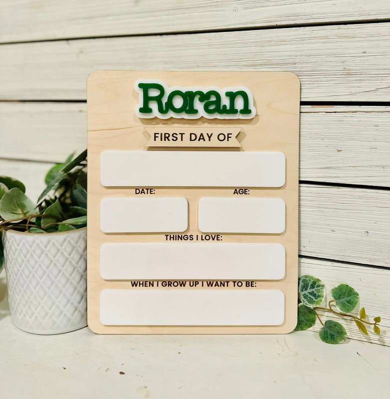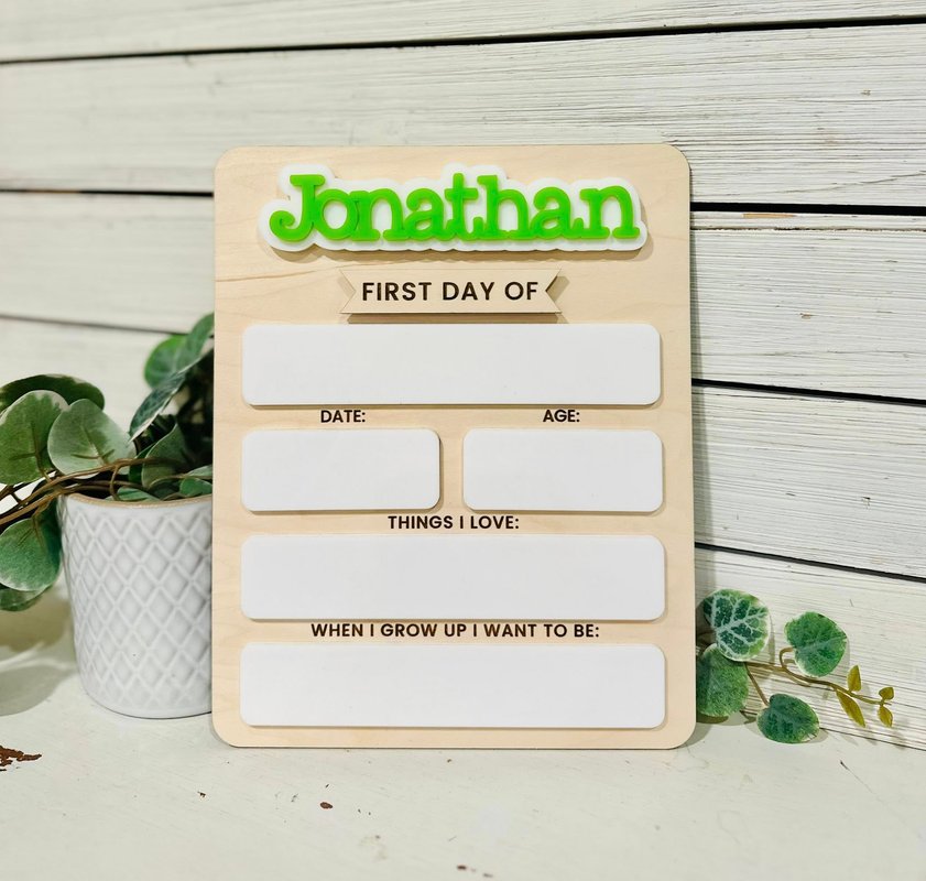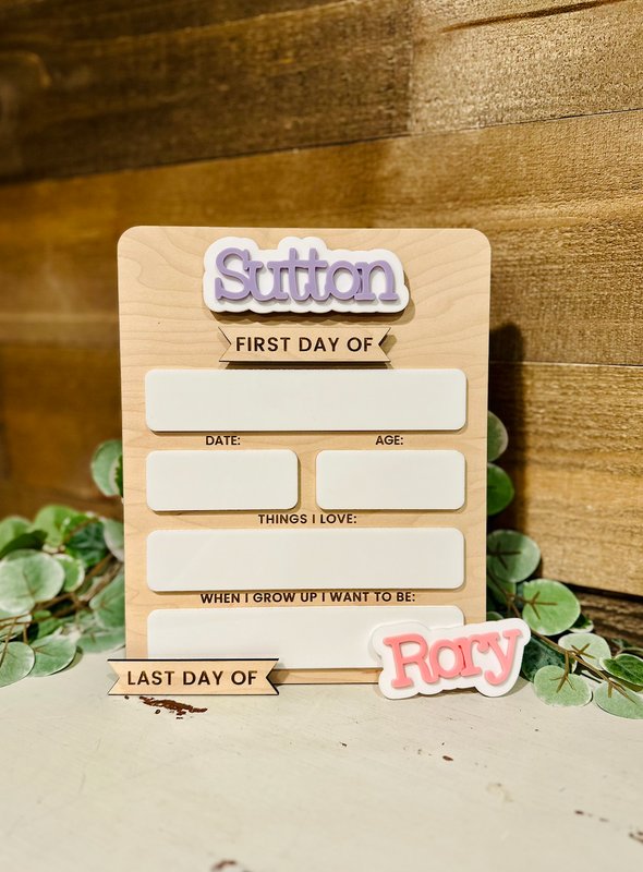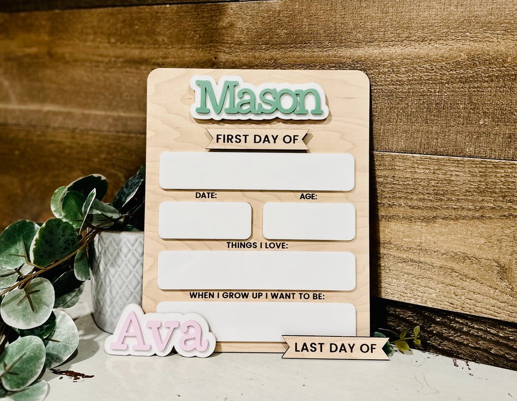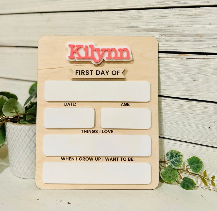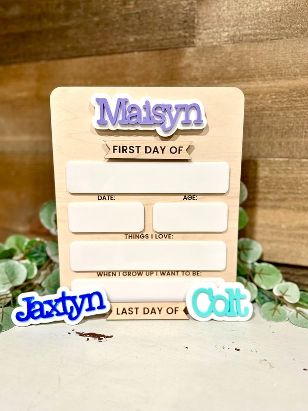 Capture those precious back-to-school memories with our Personalized First Day of School Boards! 🎒✨ These custom boards are perfect for documenting your child’s milestones year after year. Each board features their name in bold, colorful acrylic at the top, along with wipeable dry erase board spaces to fill in details. These boards make back-to-school photos extra special and create a keepsake you’ll cherish forever. Price includes 1 name. For additional names, please see separate listing.