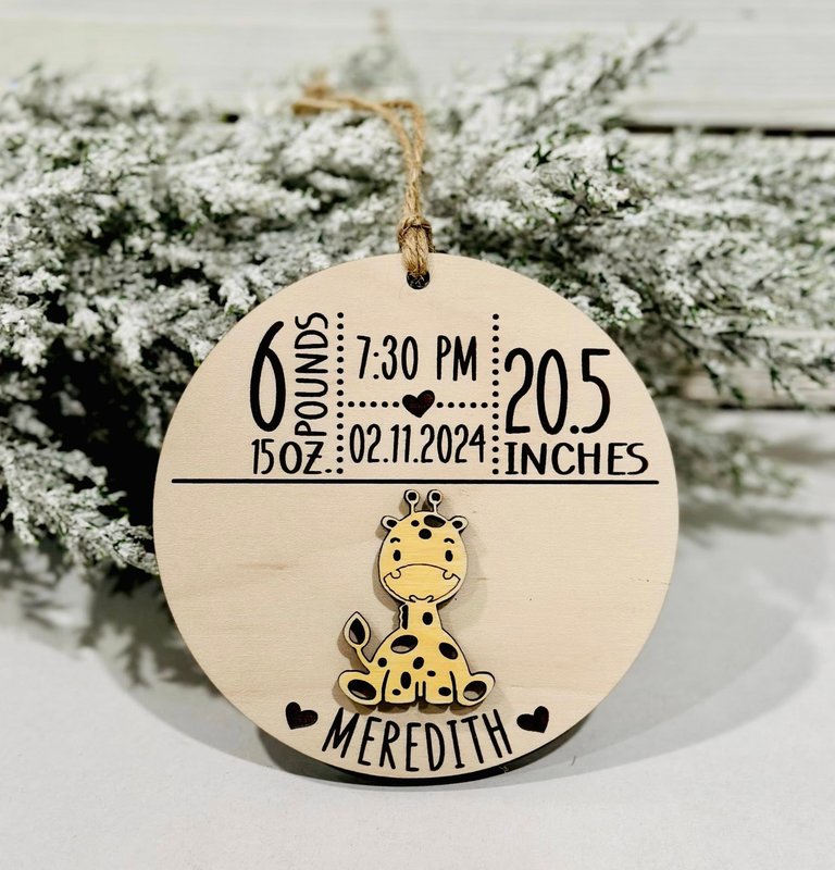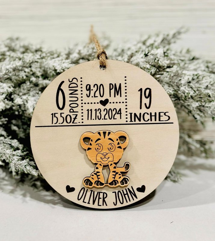 Celebrate your little one’s arrival with this adorable animal-themed birth announcement ornament! Perfect for nursery décor, memory boxes, or as a heartfelt gift for new parents and grandparents. Each ornament is lovingly crafted from high-quality wood and laser engraved with your baby’s birth details.