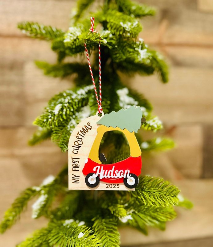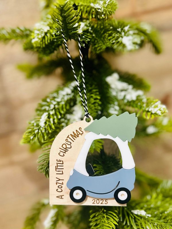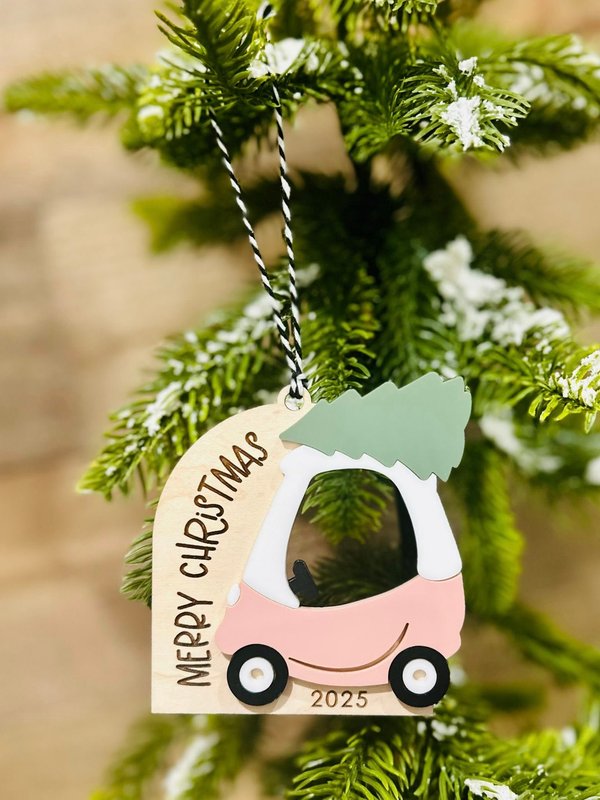Celebrate the magic of the season with this adorable handmade wooden ornament, featuring a charming cozy coupe car carrying a Christmas tree! Perfect for families, kids, or anyone who loves a touch of nostalgia and whimsy on their holiday tree.
