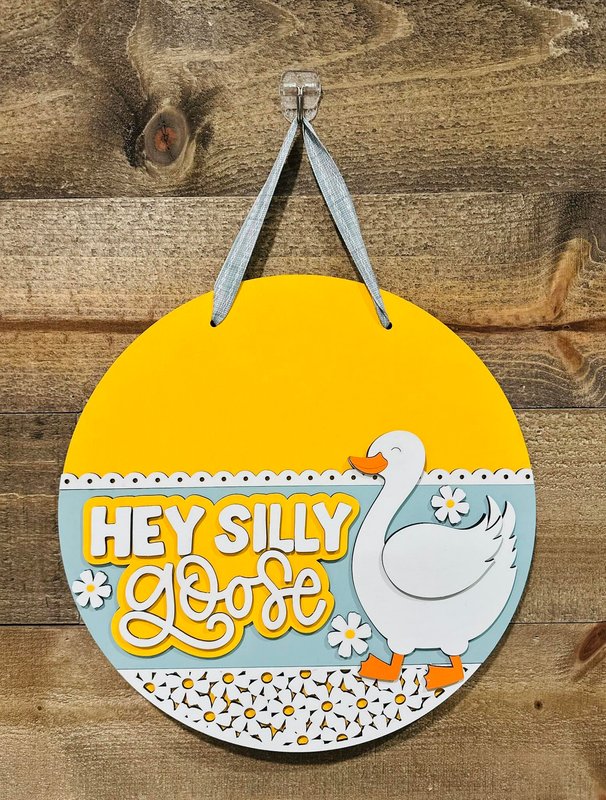 Bring some cheer and charm into your space with this “Hey Silly Goose” Layered Wood Sign! Featuring a smiling white goose, cheerful yellow accents, and daisy details, this whimsical wall decor adds a pop of personality to any room. Perfect for nurseries, playrooms, entryways, or anyone who loves a good laugh and bright, happy design!