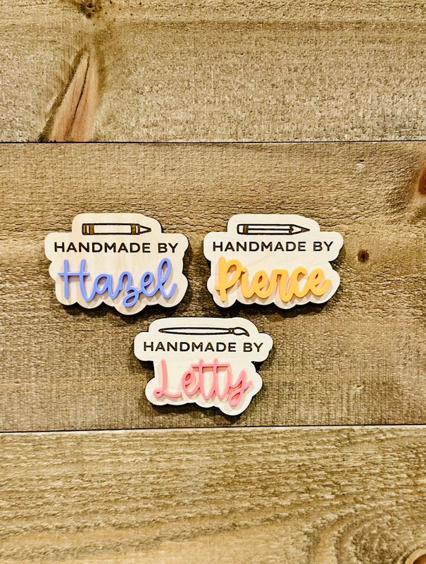 Show off your creative touch with these charming “Handmade By” personalized magnets! Perfect for makers, crafters, and small business owners, these custom magnets add a personal and professional flair to your workspace, packaging photos, or handmade gifts. Each magnet features a handcrafted layered wood and acrylic design, complete with your name in a playful script font and a cute crafting tool detail — making it the perfect gift for yourself or the maker in your life!