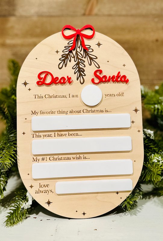 Make your child’s Christmas extra magical with this reusable “Dear Santa” dry erase sign! 🎅 Perfect for creating a sweet holiday tradition, your little one can fill in their age, favorite thing about Christmas, and top wish for the year — then sign their name at the bottom before Santa’s big night! This adorable keepsake is crafted from premium wood and acrylic, featuring laser-engraved details and layered 3D lettering. Use it year after year to capture those precious Christmas memories and see how their answers change as they grow.