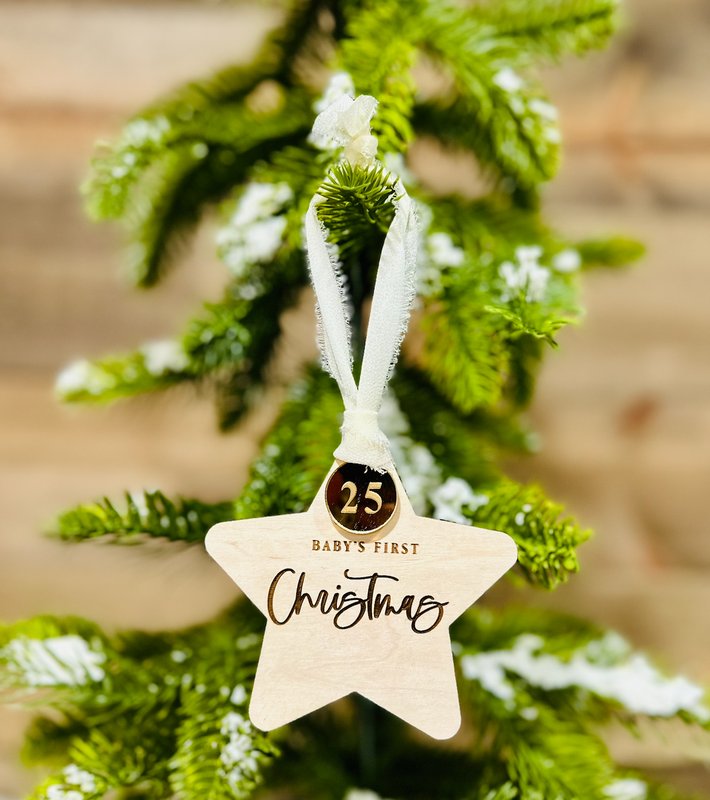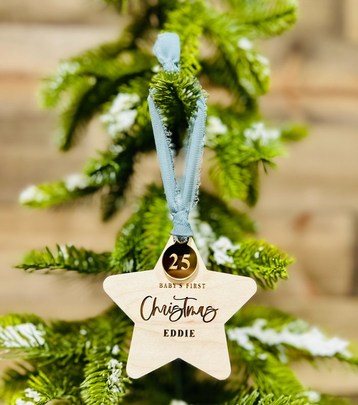 Celebrate your little one’s first Christmas with this beautifully crafted wooden star ornament! Made from high-quality natural wood and engraved with your baby’s name, this piece is the perfect keepsake to treasure for years to come.