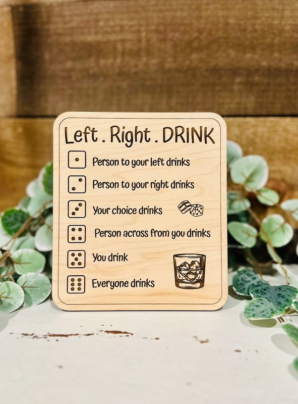Level up your next game night with this Left Right Drink wooden game sign 🎲🥃 Simple rules, lots of laughs, and zero setup—just roll the dice and let the sign do the rest. Made from natural wood with engraved details, this plaque is perfect for bar carts, man caves, home bars, and party tables. It also makes a hilarious and unique gift for game lovers and party hosts.